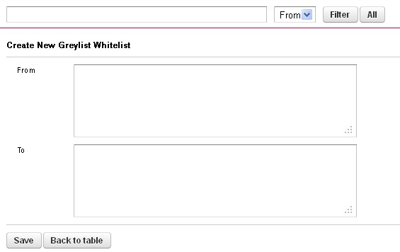 Die Neuanlage von Greylist Whitelist Einträgen erfolgt über diesen Button.